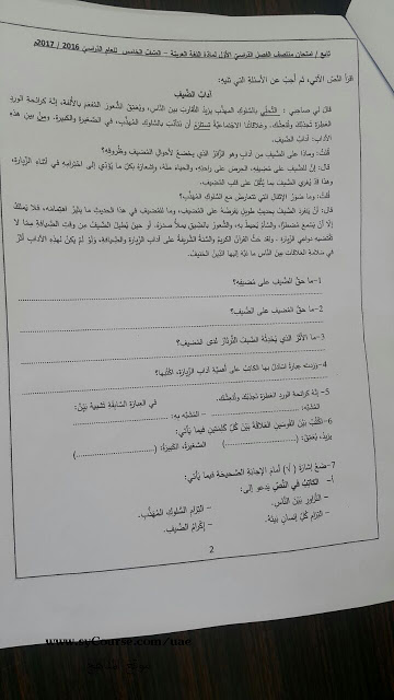 امتحان في اللغة العربية للصف الخامس الفصل الأول 2016 2017
