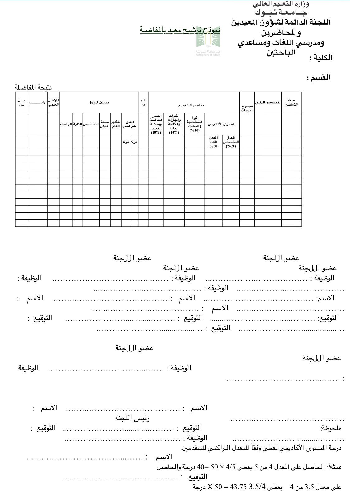 وافي بن عبد الله On Twitter نموذج ترشيح معيد بجامعة تبوك ويلاحظ بأن المعدل الدراسي له نسبة 70 في المفاضلة 10 قوة شخصية 10 قدرات وثقافة 10 سلامة التعبير أكاديميات وافي Https T Co Xxfsjuqrm2