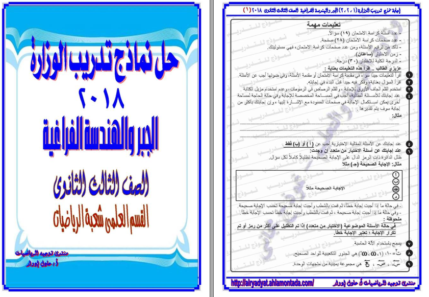 حل كل نماذج بوكليت التجريبى للجبر والهندسة الفراغية للثالث الثانوى كاملة للمراجعة للاستاذ عادل ادوار