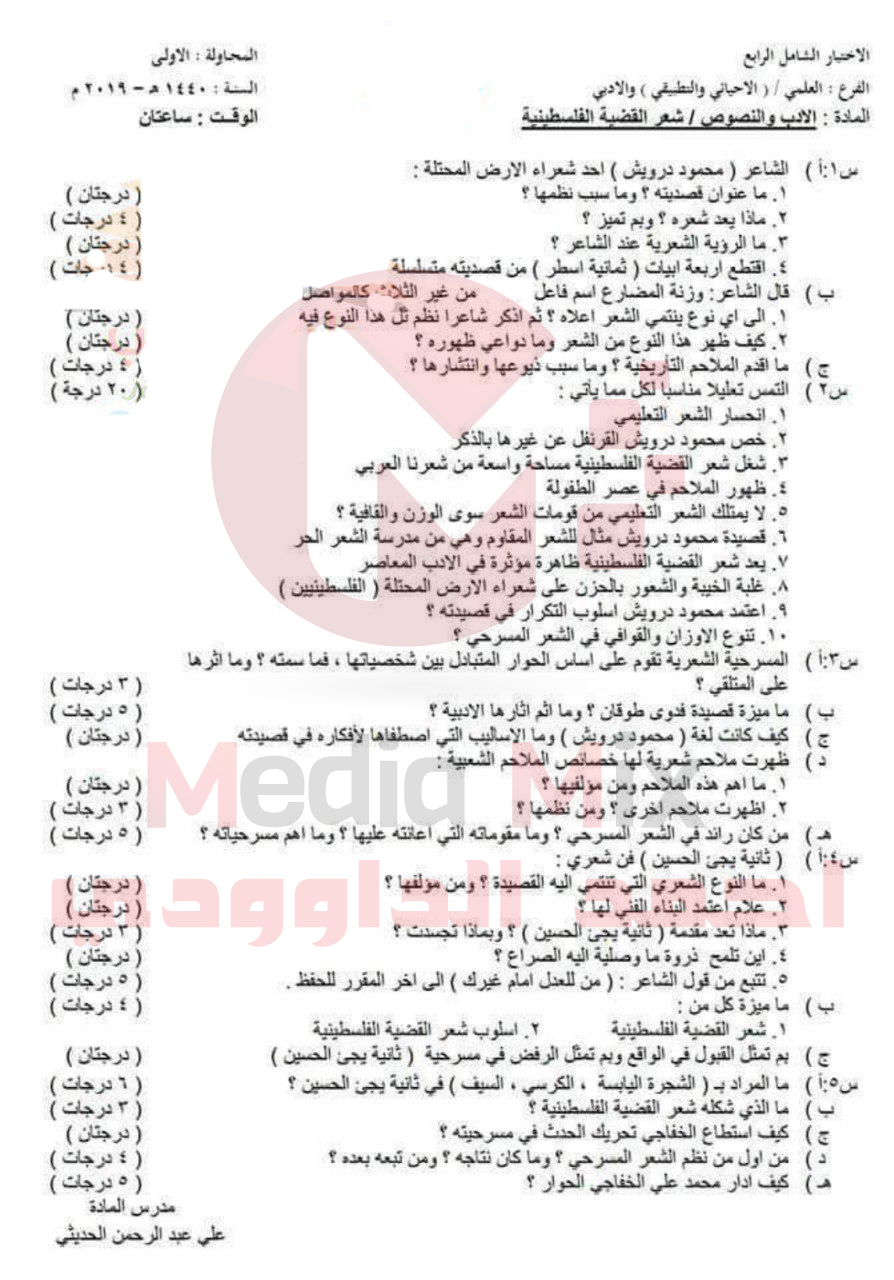 نماذج اختيارية لاسئلة وزاريه مهمه مادة الادب والنصوص للسادس العلمي والادبي 2020