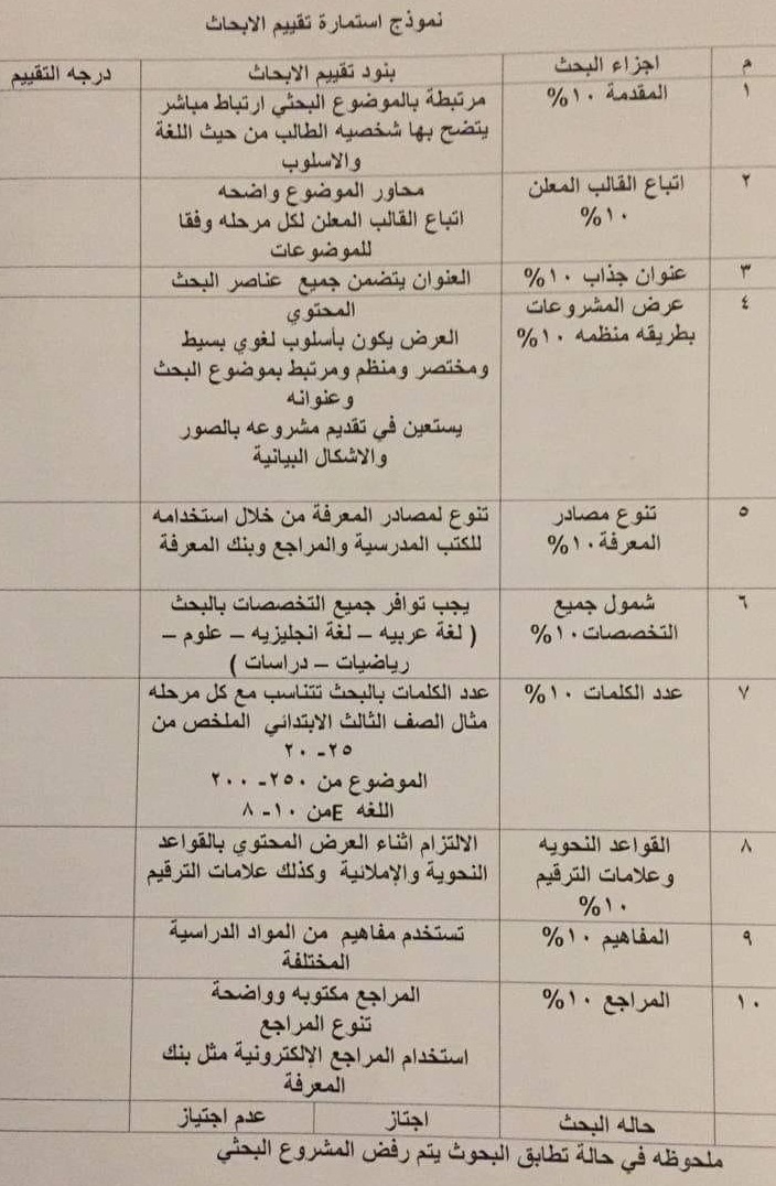 ننشر نموذج استمارة تصحيح وتقييم ابحاث الطلاب اعرف درجتك وحالة البحث اجتاز او عدم اجتياز