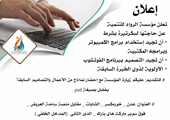 مؤسسة الرواد للتنمية تعلن عن وظيفة شاغرة التفاصيل شبكة رؤية الاعلامية I عدن