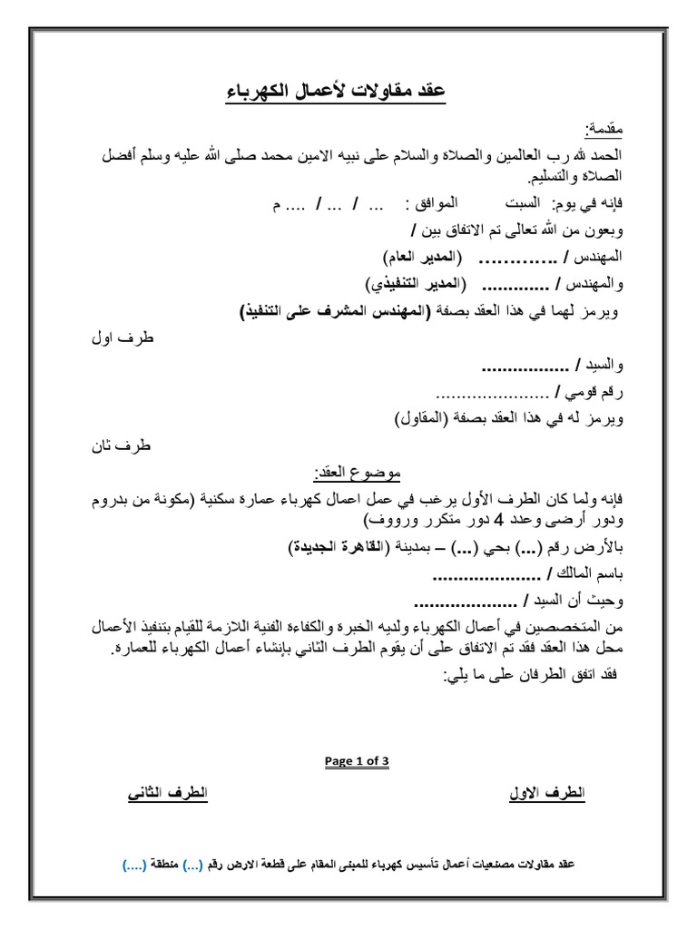 صيغة و نموذج عقد مقاولة من الباطن استشارات قانونية مجانية
